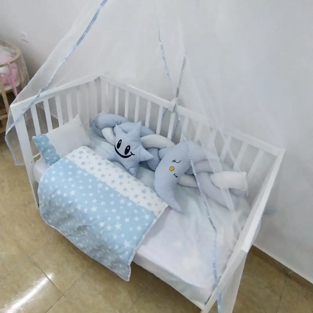 طقم فراش صيفي أو ربيعي فاخر مصمم خصيصًا لمهد وسرير الأطفال، يضمن الأمان والراحة لطفلك مع لمسة زخرفية مميزة. يتميز بجدلة حماية دائرية مبطنة، مثالية لحماية سرير الرضيع، وناموسية (شاشية حماية) شاملة لحماية طفلك من الحشرات والغبار. يتضمن الطقم جميع المستلزمات بما في ذلك عمود ومثبت الناموسية، وسائد زخرفية (غيمة، قمر، نجمة أو فيل)، لحاف مزدوج الاستخدام، وملف فرشة بتصميمات جذابة.