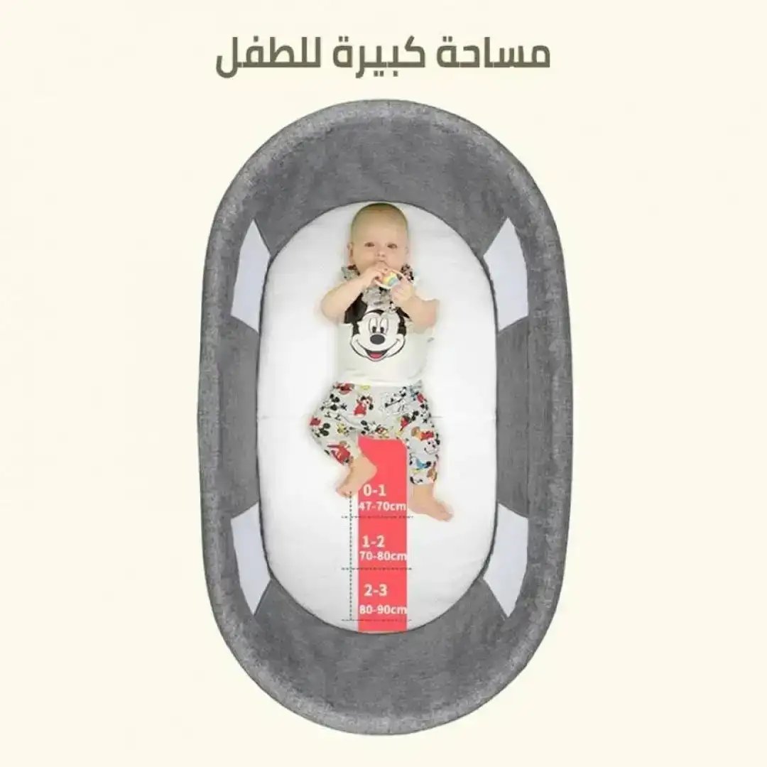 - تصميم آمن ومغلق بالكامل: يمنع الطفل من التدحرج خارج السرير.