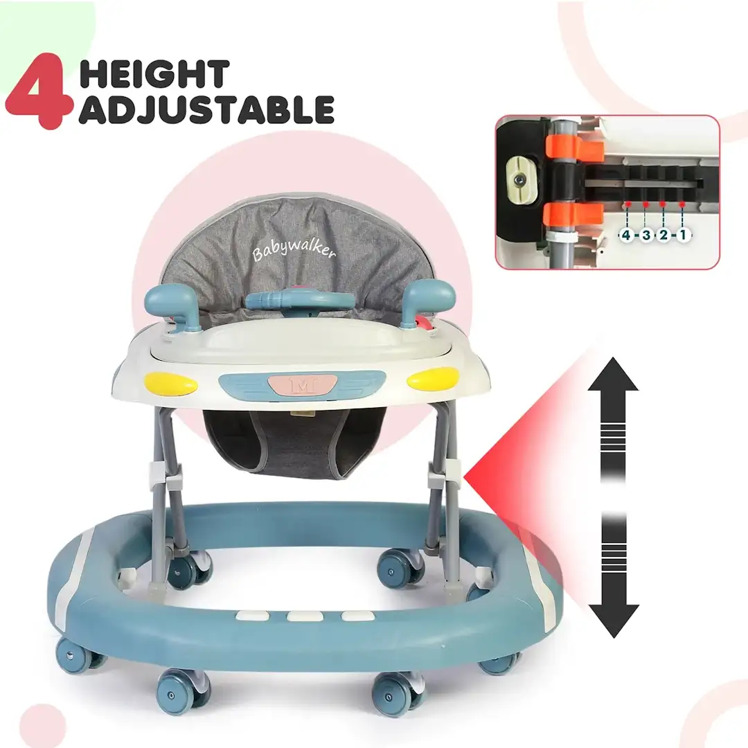 - أربعة مستويات لارتفاع المقعد: يمكن تعديل ارتفاع المشاية لتناسب أطوال الأطفال المختلفة. مما يمنع تشوه الساقين على شكل حرف O، ويساعد الطفل على تعلم المشي بشكل صحيح.