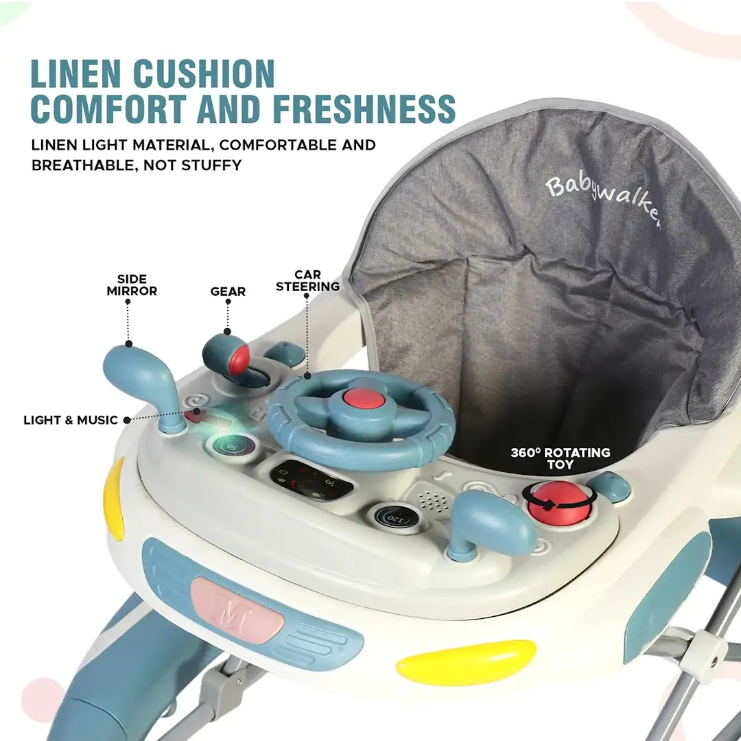 - عجلات دوارة بزاوية 360 درجة وتصميم خفيف الوزن: تتميز المشاية بعجلات دوارة لحركة سلسة على مختلف الأسطح. وتصميم خفيف الوزن يبلغ 5.2 كجم، مما يجعلها سهلة الاستخدام في المنزل أو أثناء التنقل.