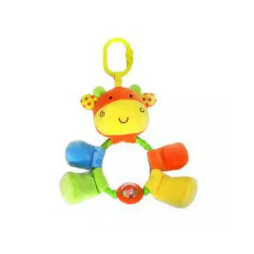 لعبة معلقة على شكل حلقة محبوكة مع قماش قطني لطيف لتشكل دبدوب محبب لطيف يصدر خشخيشات أثناء الحركة، يمكنك بسهولة إرفاق اللعبة على سبيل المثال، بمقعد السيارة “الكوت”، السرير أو عربة الأطفال.