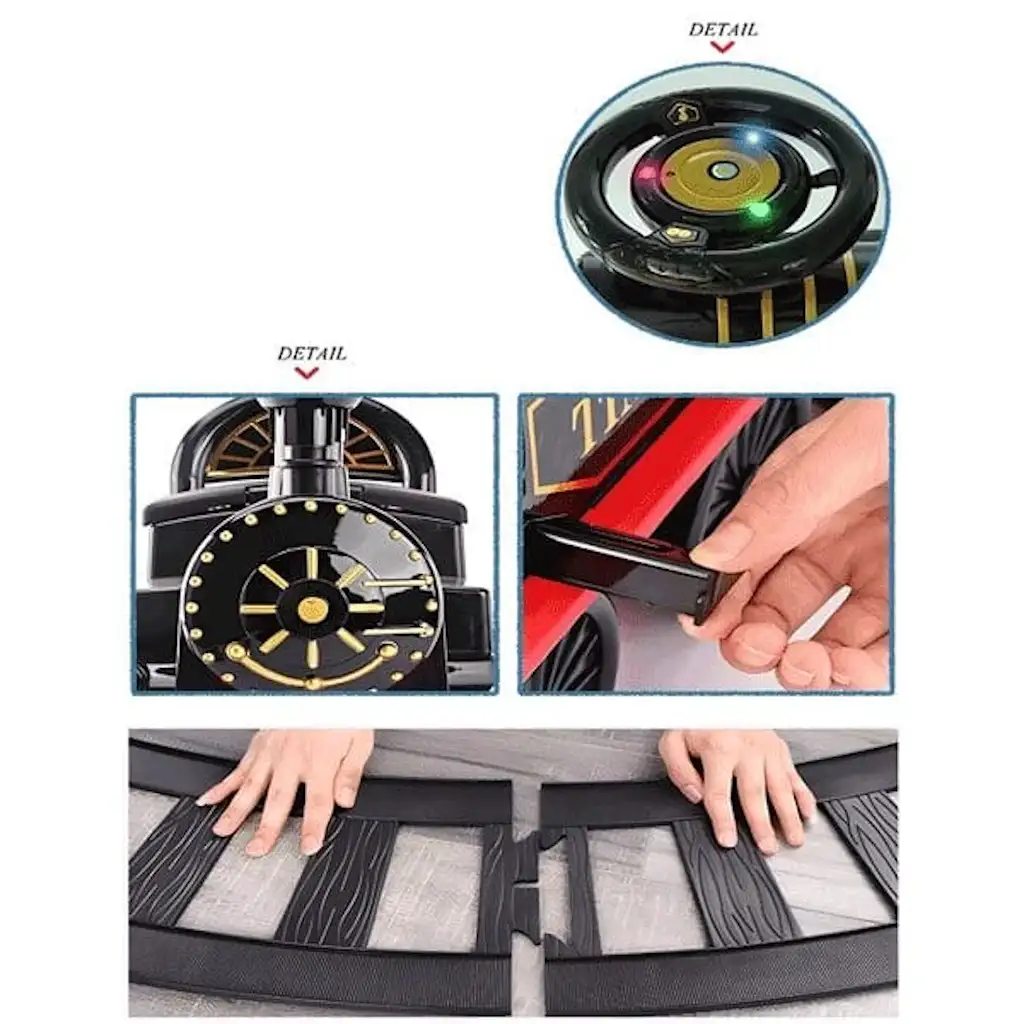 - موسيقى وأضواء تضاعف المتعة: عند الضغط على الزر الأيسر، تصدر أصوات قطار واقعية مصحوبة بأضواء ملونة وامضة بثلاثة ألوان. أما عند الضغط المستمر على زر التشغيل، فينطلق القطار في رحلته.