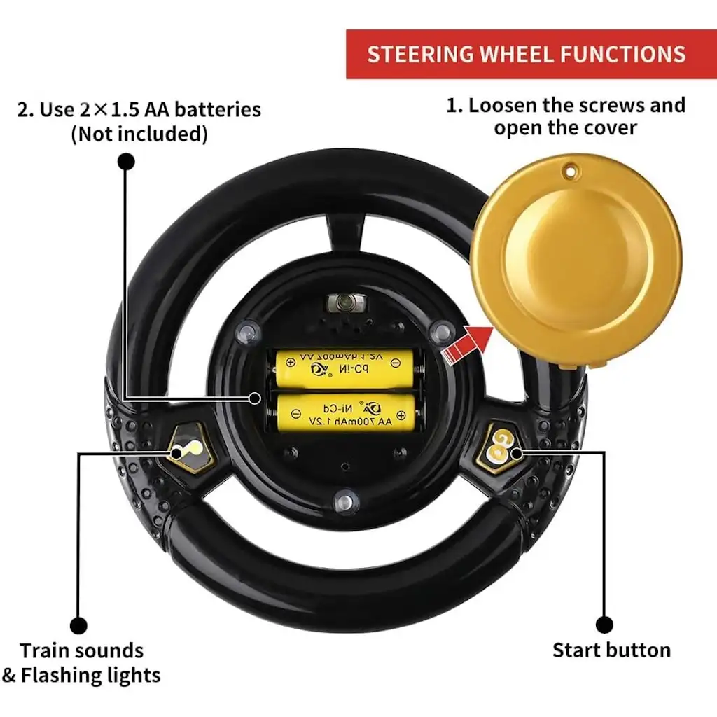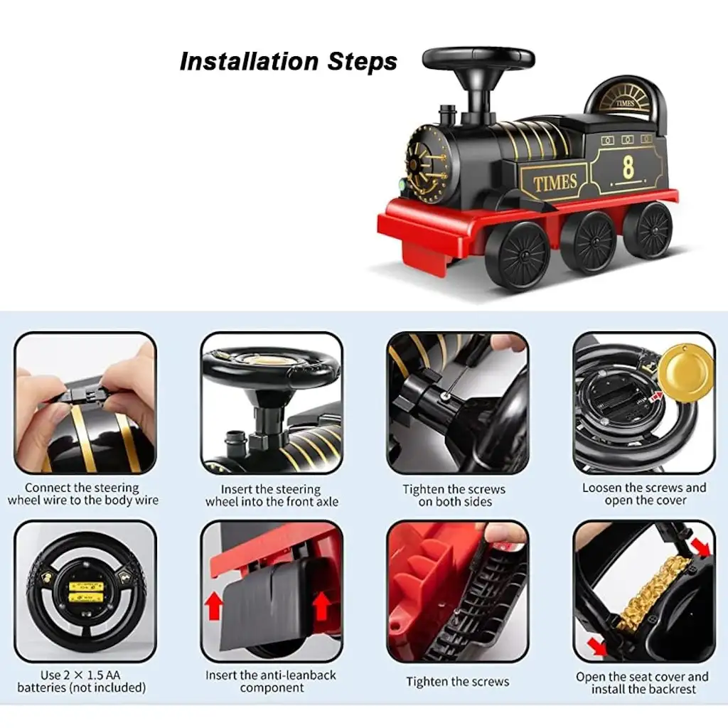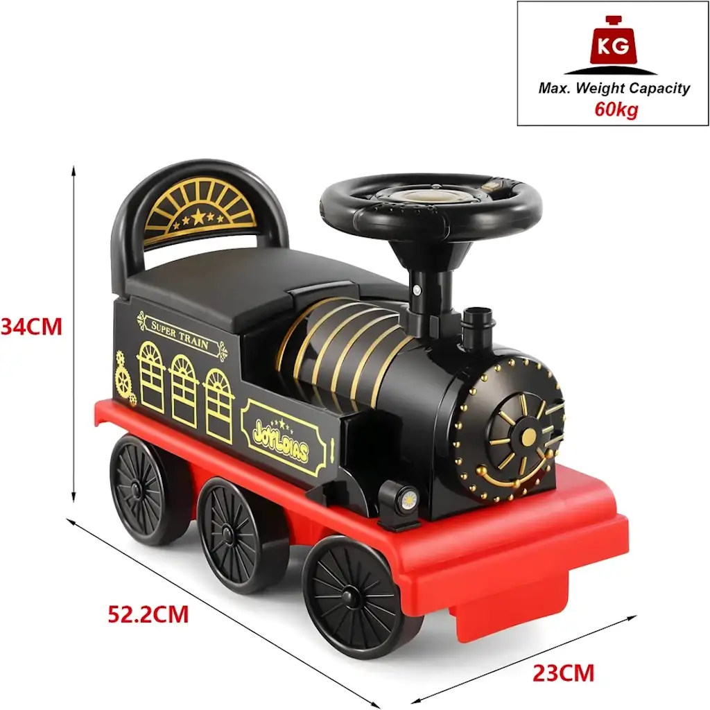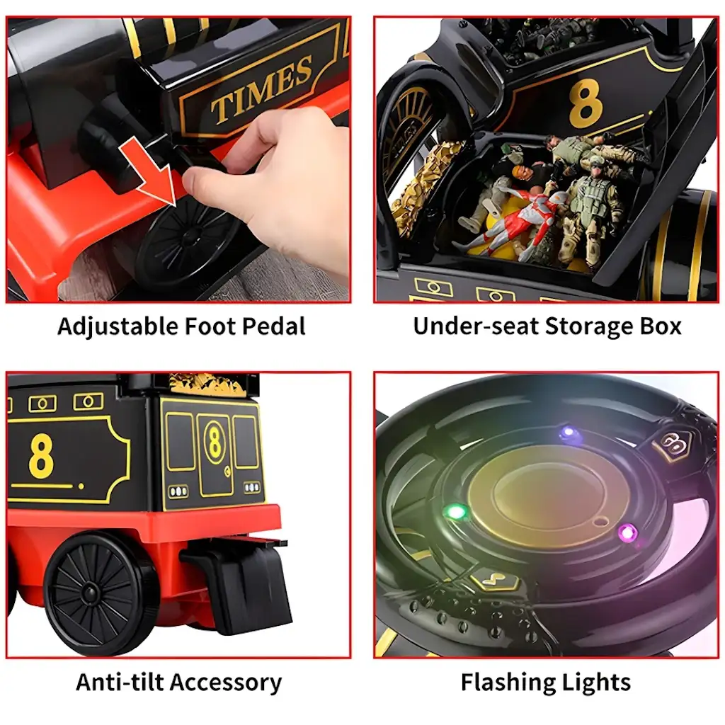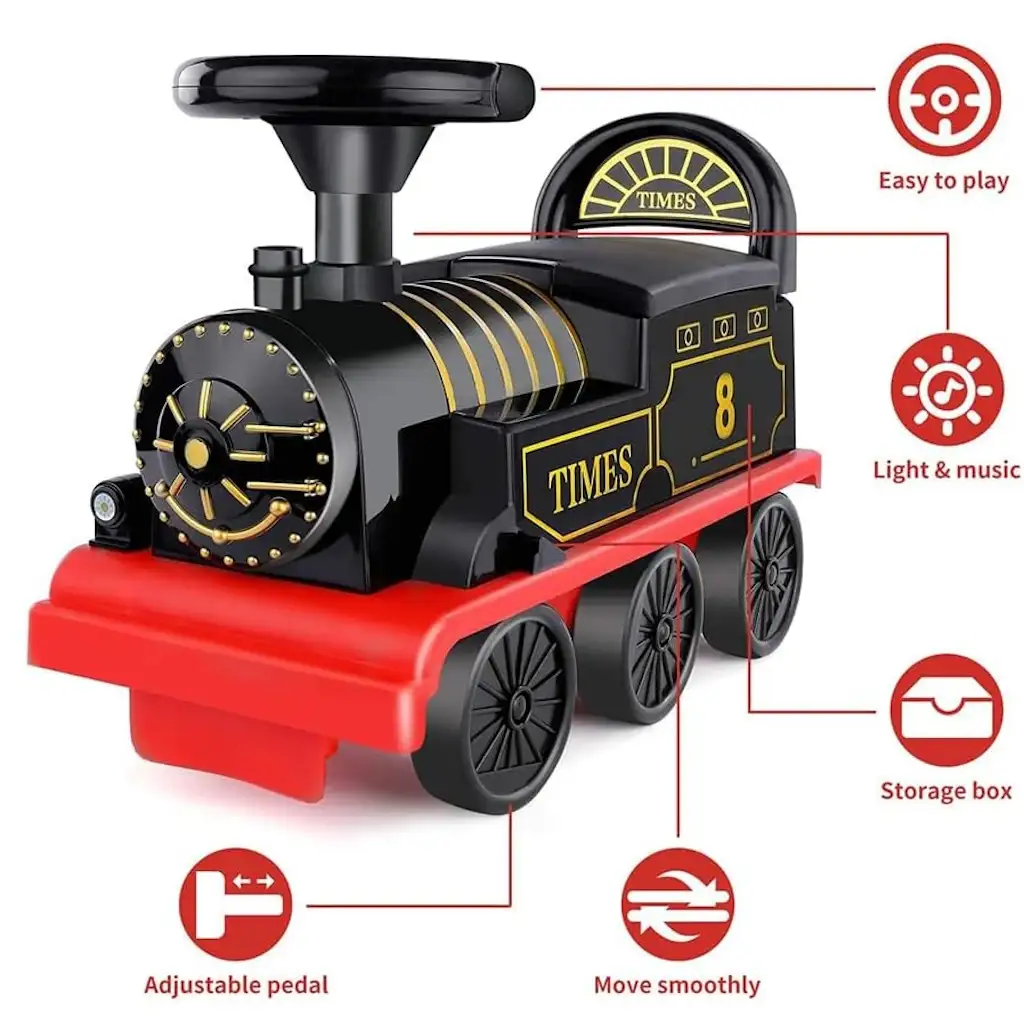 - بالإضافة إلى ذلك، يمكنك تحويل القطار إلى مشاية أطفال أو عربة ألعاب قابلة للسحب مع مساحة تخزين عملية أسفل المقعد لحفظ الألعاب والوجبات الخفيفة والكتب والهدايا.