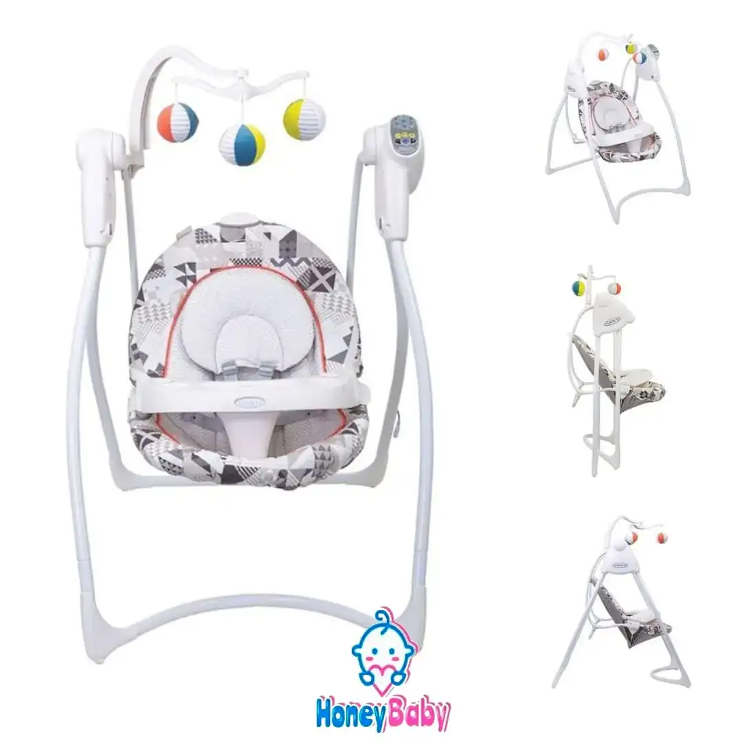 مرجوحة جراكو Graco® Lovin’ Hug بتصميم مقعد منحني ليحاكي طريقة احتضان الأم لطفلها بين ذراعيها، أبقِ طفلك هادئًا ومسترخيًا، يوفر 4 أوضاع لجلوس الطفل و 6 سرعات تأرجح، بالإضافة إلى مسند رأس ومقعد مبطن وحزام من 5 نقاط لتعزيز الراحة والأمان.
