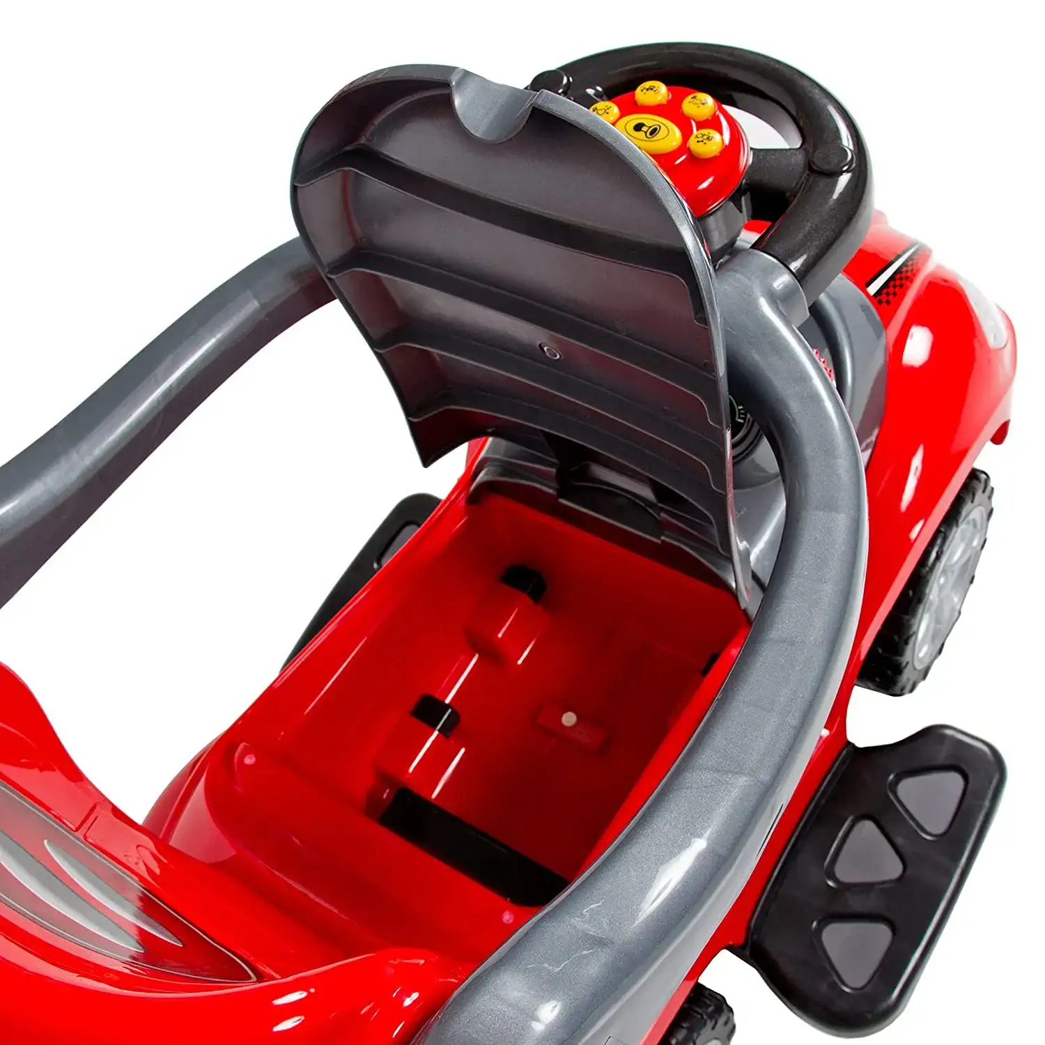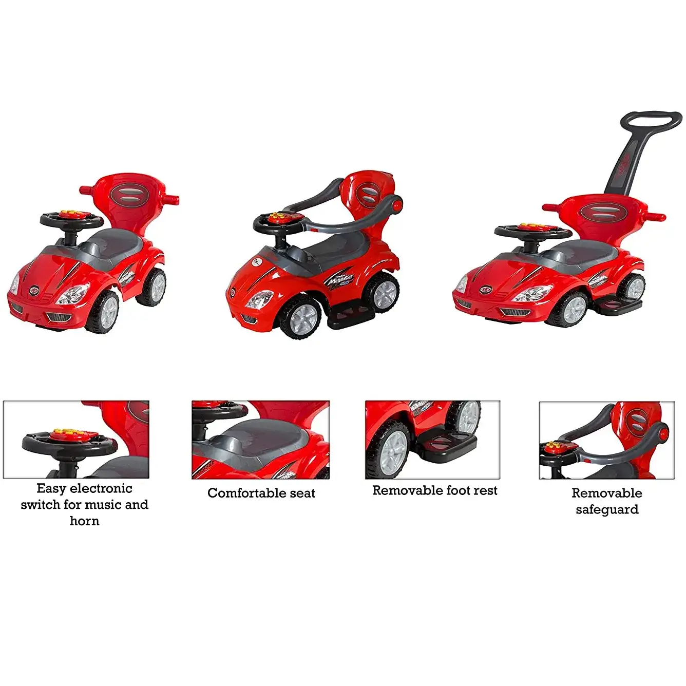 المقبض الطويل المزود يمكن الاهل من دفع السيارة ومنح الطفل رحلة ممتعة. يسهل استخدامها للعب ويمكن اللعب بها داخل المنزل أو في الخارج. السيارة مصنوعة من هيكل بلاستيكي عالي الجودة لضمان المتانة. سيارة الركوب والدفع بتصميم 3 في 1 رائعة للأطفال مع إمكانية استخدامها كمشاية أو كسيارة ركوب أو كعربية أطفال. كما تحتوي على عجلة قيادة مع بوق.