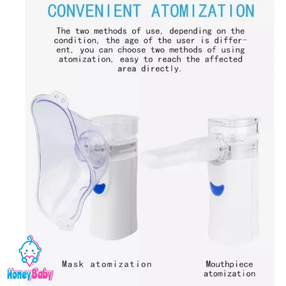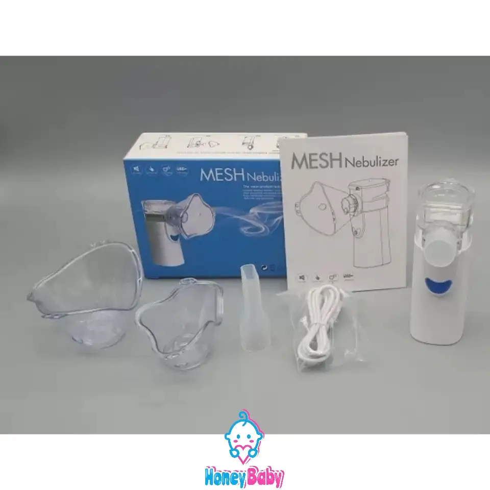 جهاز التبخيرة المحمول الصامت من Mesh يعمل على البطاريات أو الكهرباء بدون اي صوت، صغير الحجم لوضعه في الجيب، يعمل بكبسة واحدة مع قناعين وقطعة للفم.