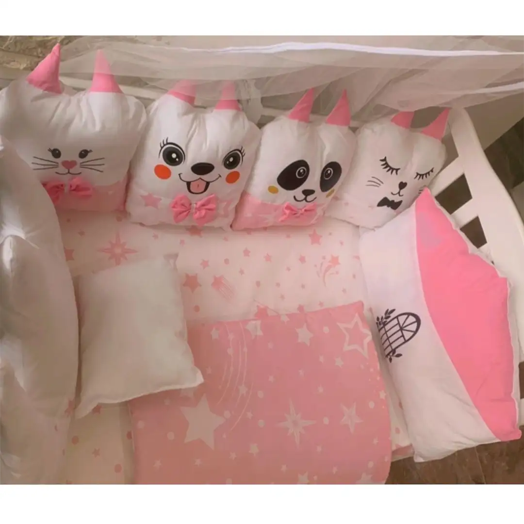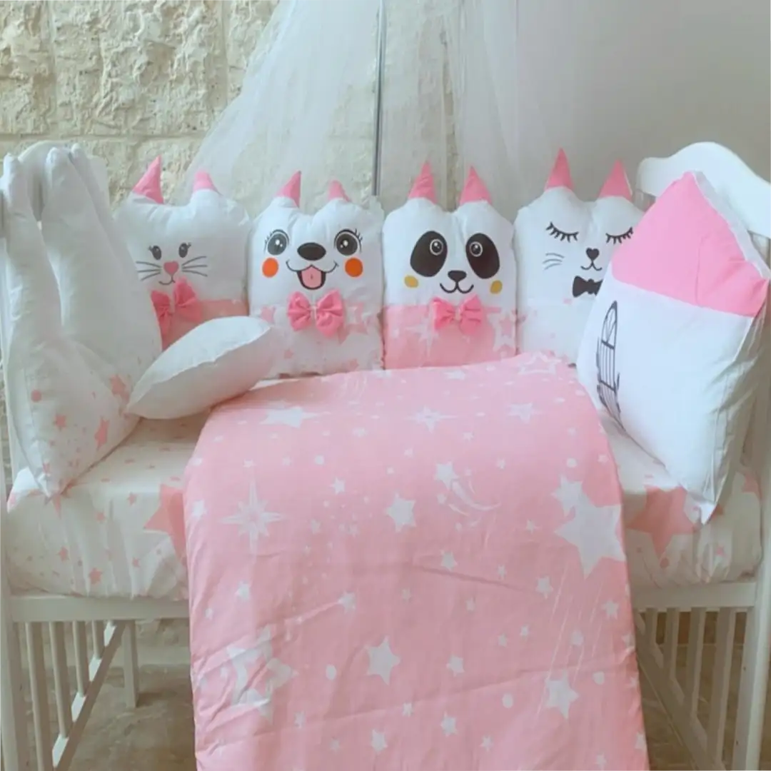 مفرش الألعاب- طقم مفرش سرير المواليد بتصميم الألعاب- زهري
