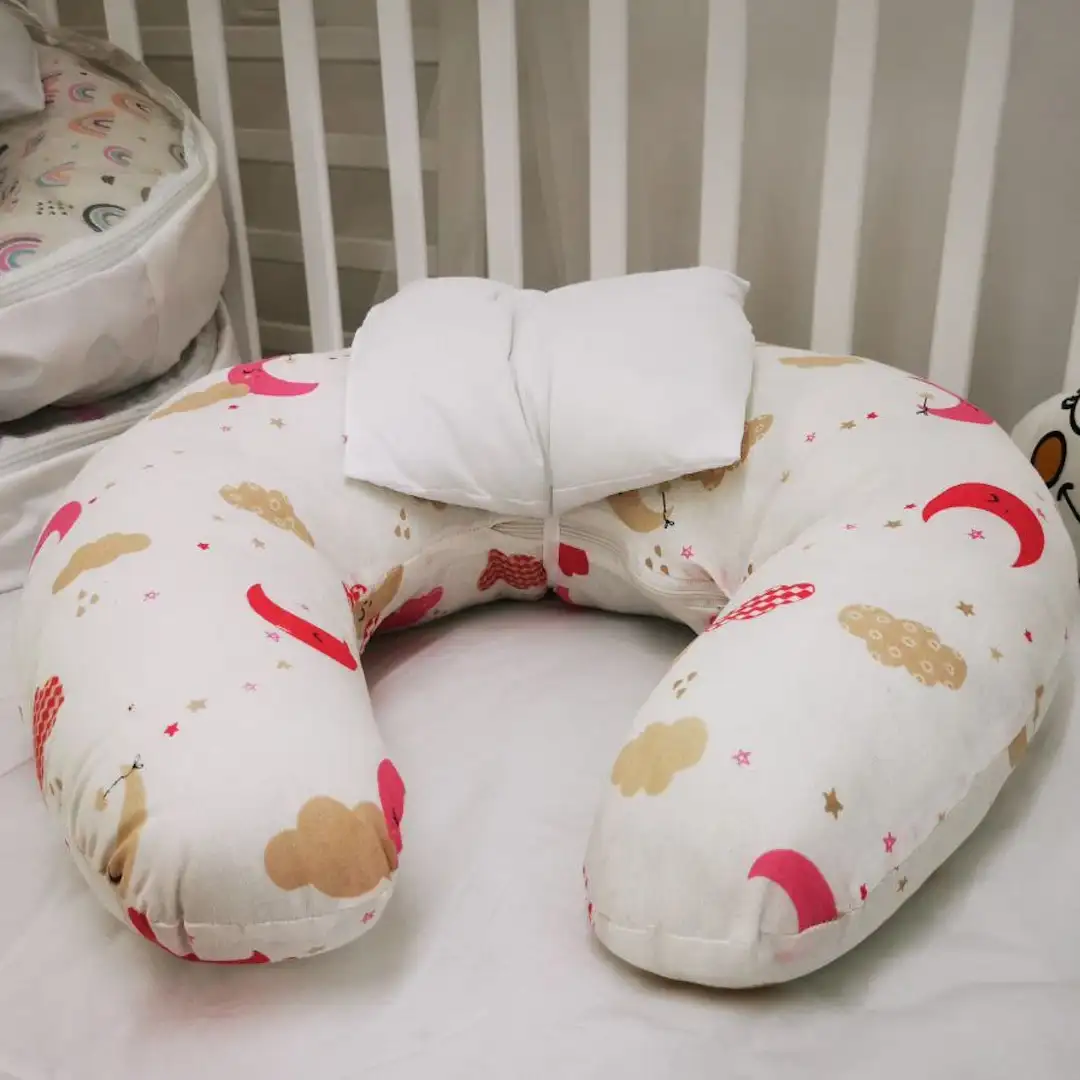 وسادة رضاعة متعددة الاستخدامات تمنح الأم والطفل الدعم المثالي للرضاعة الطبيعية أو الصناعية، بخامات ناعمة وتصميم بناتي مناسب لأميرتك الصغيرة.