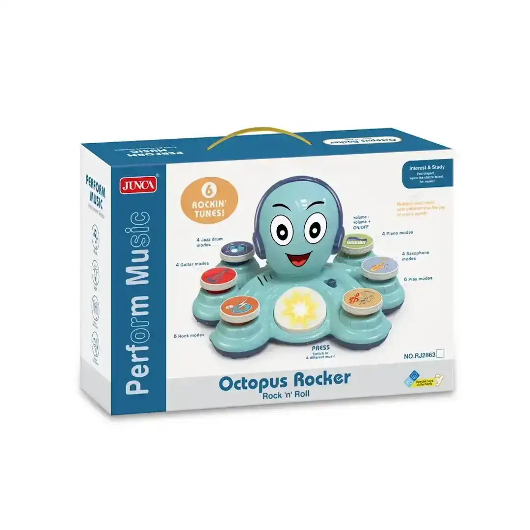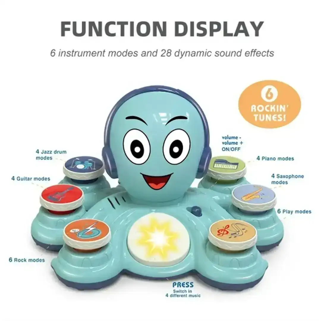 تعد لعبة الأخطبوط الموسيقية واحدة من أفضل الألعاب التعليمية للأطفال بعمر 1 و2 و3 سنوات. كذلك هذه اللعبة التفاعلية مصممة لتطوير الإحساس الموسيقي والإيقاع لدى الأطفال الصغار، مع 32 وضعًا موسيقيًا يشمل أصوات طبول الجاز، الجيتار، البيانو، و الساكسفون. كذلك تحتوي اللعبة على 6 أزرار ملونة وأضواء نابضة بالحياة لتعزيز التطور البصري والسمعي للأطفال.